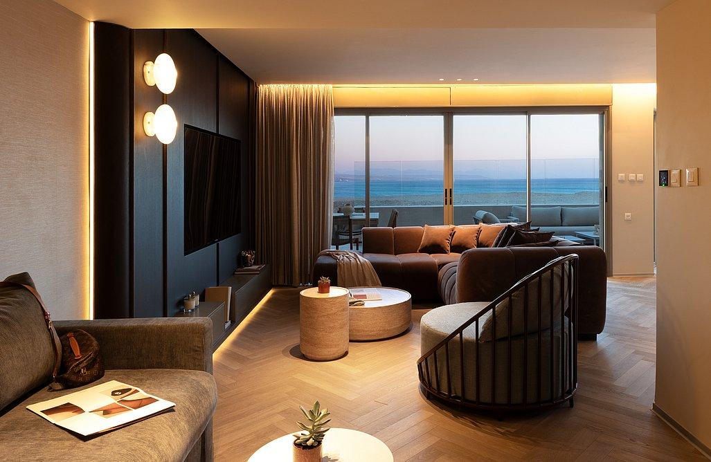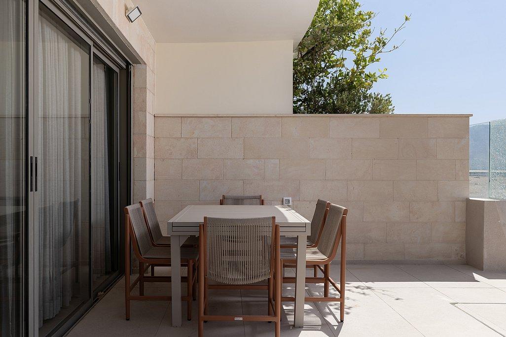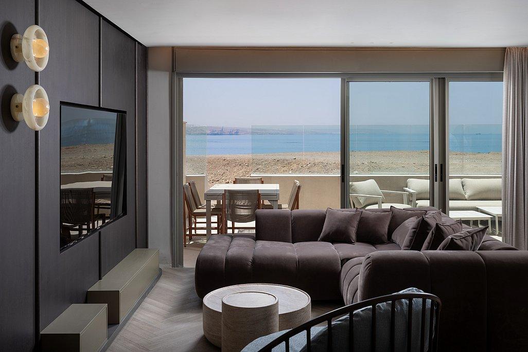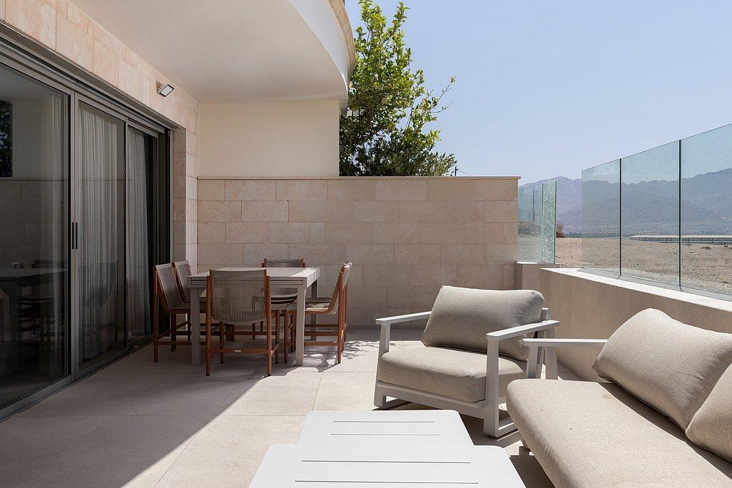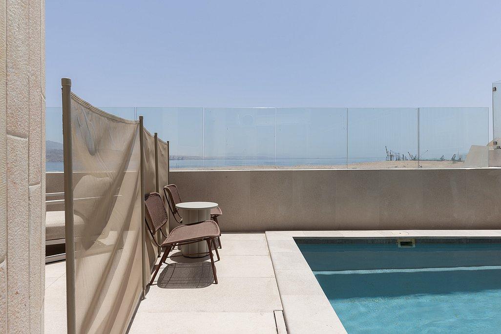 - מיטת שיזוף, ריהוט גן ופינת ישיבה מול נוף לים