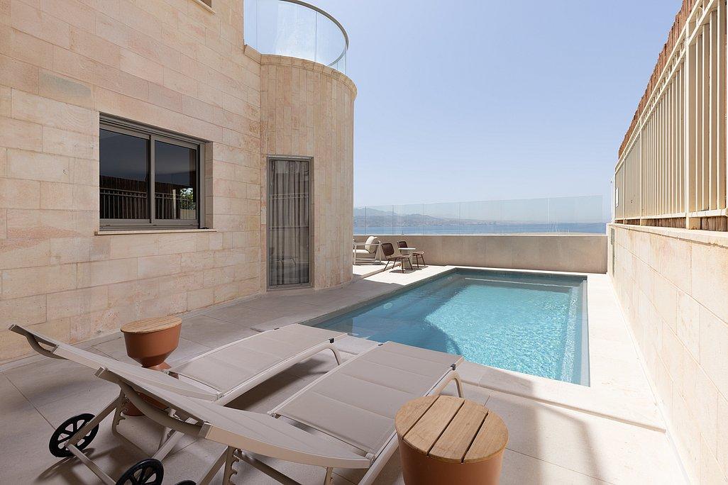 במתחם החיצוני מחכה לכם בריכה מחוממת, מיטות שיזוף, מנגל, ריהוט גן ופינת ישיבה מול נוף פתוח – חופשה מהנה באווירה רגועה עם כל הפינוקים.