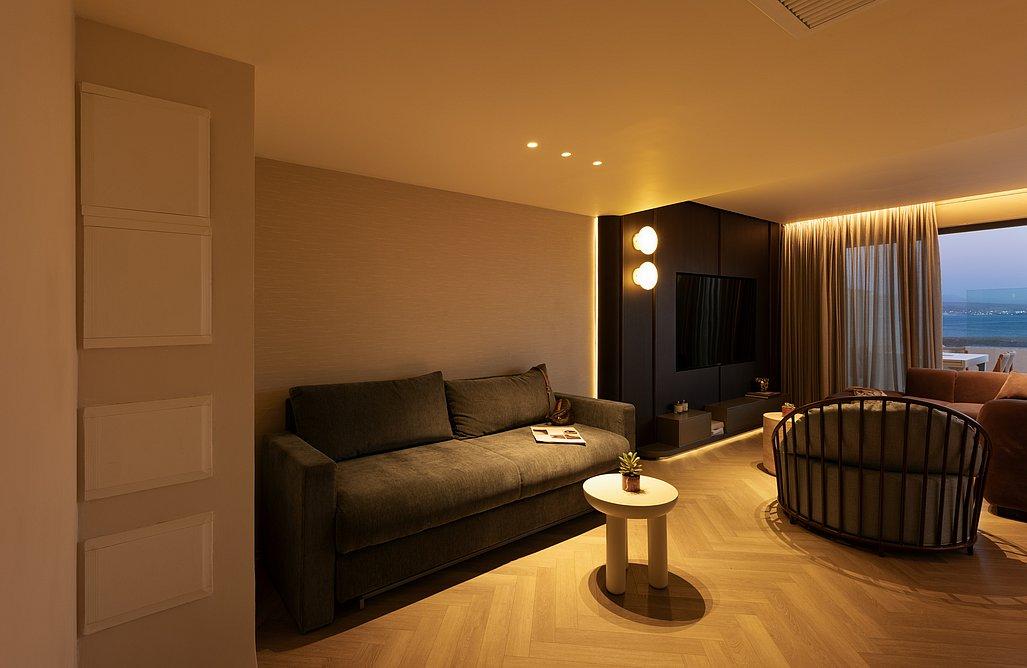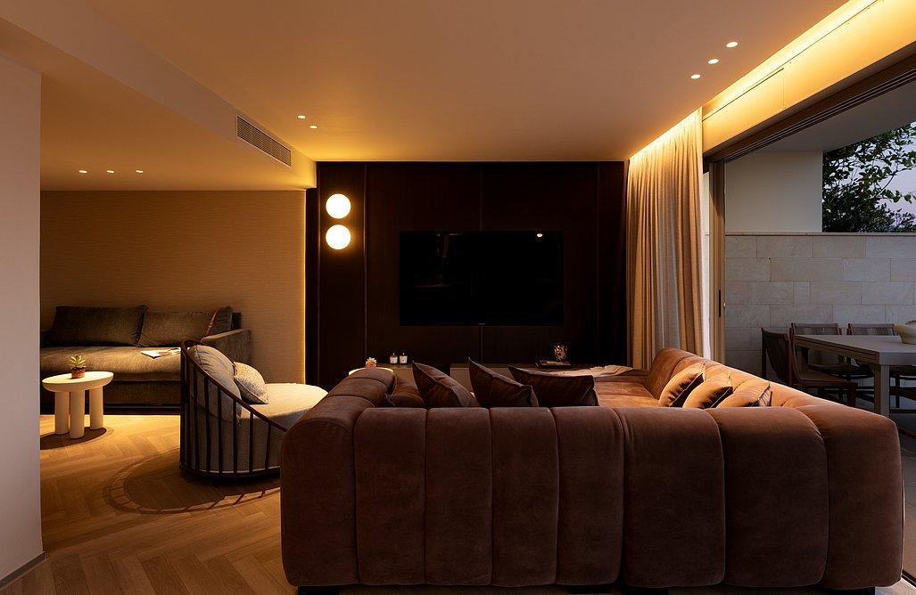 - סלון מעוצב עם ספה נפתחת, טלוויזיה חכמה וחבילת ערוצים בלוויין