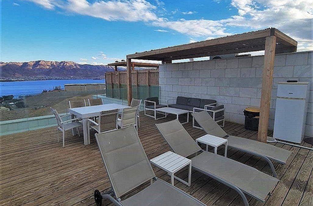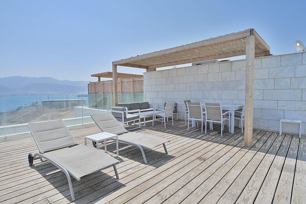 בגג של וילה זו תוכלו ליהנות גם מבריכה בגודל 6 על 3 מטר, פינות ישיבה, מקלחון, מיטות שיזוף ונוף מדהים.